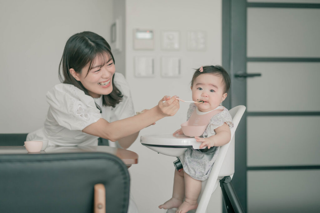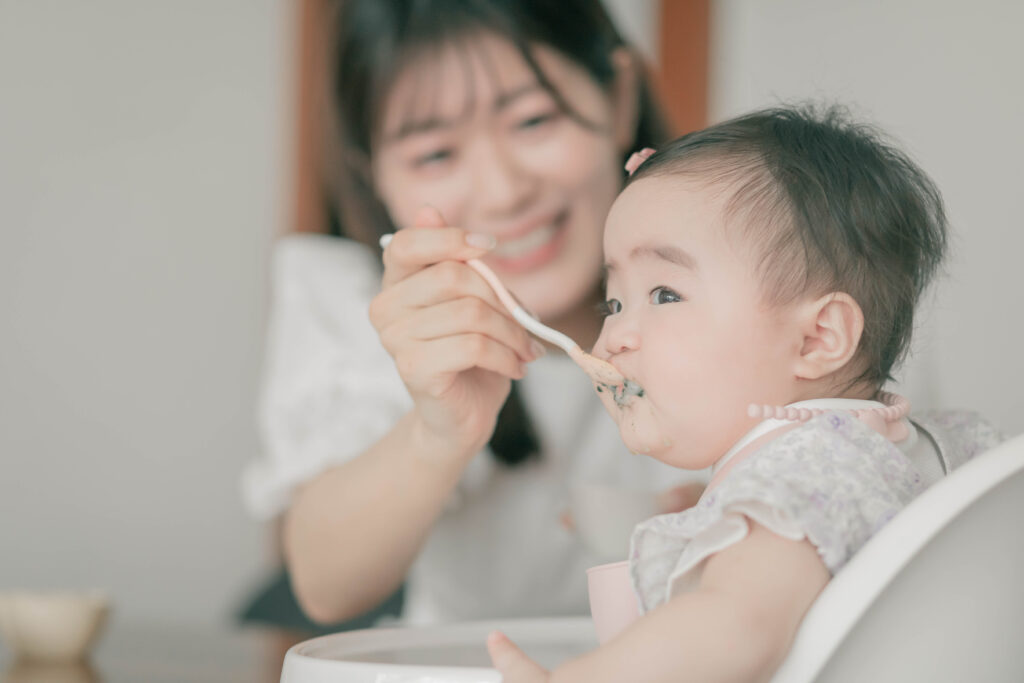 離乳食を口に運ぶこと。